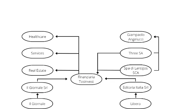 As previously mentioned, another structural feature of the Italian media system, complementing the “Chinese box” ownership model and further complicating the reconstruction of ownership chains, is the persistence of what Hallin and Mancini (2004) define as impure publishing in which news outlets are owned by groups with significant business interests outside the information sector, such as automotive, finance, sports, real estate, or healthcare. This model of diversified and collateral interests creates links with non-media companies and raises questions about the extent to which external business activities may influence editorial independence. In the most prominent cases, such as Exor and Tosinvest, these interests are highly diversified.