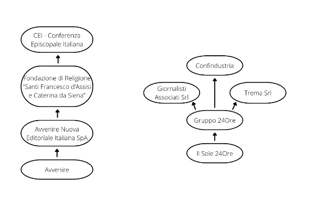 Another example of non-media ownership is represented by Il Sole 24 Ore and Avvenire, owned respectively by Confindustria – the association of Italian entrepreneurs, a key player in the country’s economic and political system – and by the Italian Episcopal Conference (hereafter CEI), closely tied to the Vatican and the Catholic Church. Both newspapers thus reflect ownership structures with strong organizational and institutional affiliations outside the journalistic sphere.